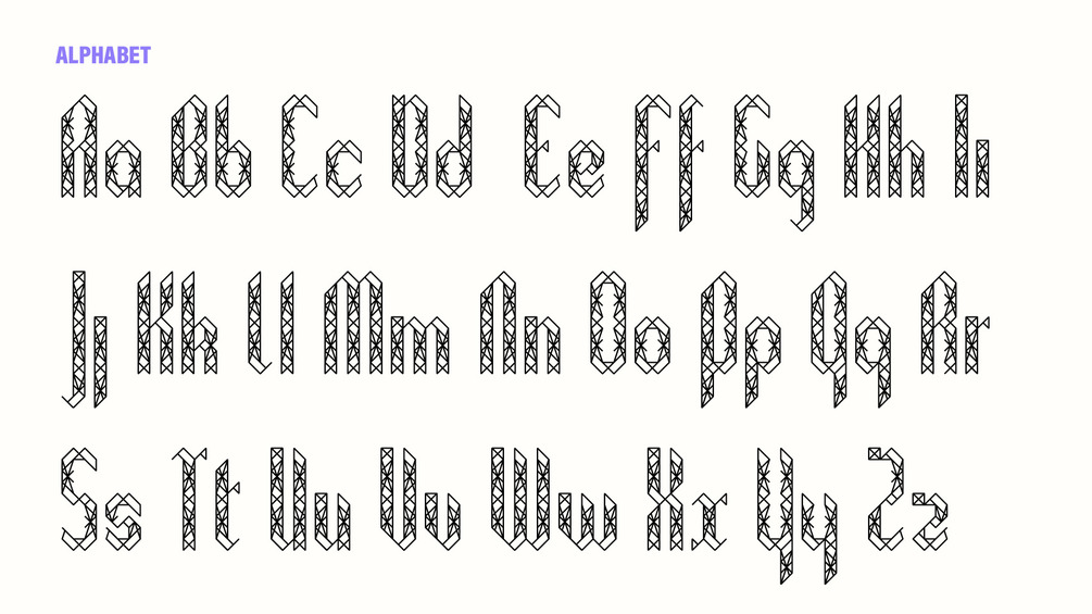 Blight is a blackletter forged from lattice geometry. The typeface pays homage to electricity pylons - the steel structures that power nations, but split public opinion.